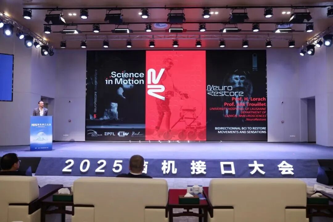 专家共话脑机接口未来主题演讲环节,复旦大学附属华山医院院长毛颖,德国卡尔斯鲁厄技术研究所名誉教授、CorTecGmbH和NeudioLLC创始人J?rnRickert,临港实验室首席科学家洪波,瑞士洛桑大学助理教授HenriLorach分别进行分享。