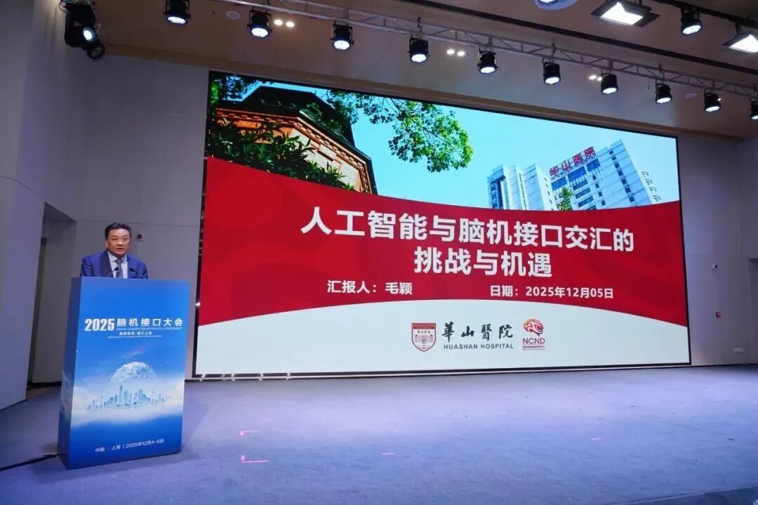 专家共话脑机接口未来主题演讲环节,复旦大学附属华山医院院长毛颖,德国卡尔斯鲁厄技术研究所名誉教授、CorTecGmbH和NeudioLLC创始人J?rnRickert,临港实验室首席科学家洪波,瑞士洛桑大学助理教授HenriLorach分别进行分享。